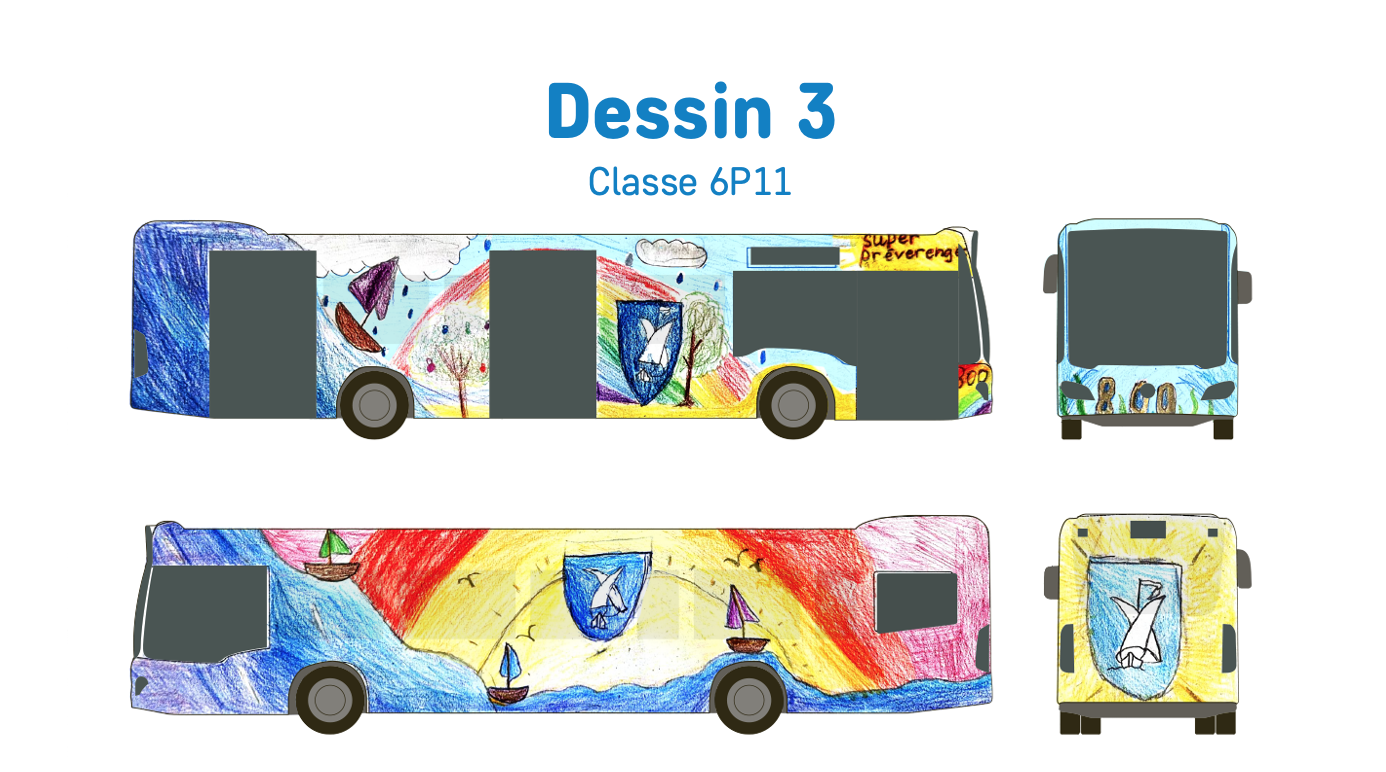 Le dessin qui remporte le concours est celui de la classe 5P11 de Mme Munafò, avec 294 votes.